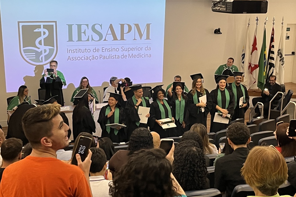 Em uma cerimônia marcada por emoção e homenagens, o Instituto de Ensino Superior da Associação Paulista de Medicina (IESAPM) realizou, no último dia 14 de abril, a colação de grau da segunda turma do curso superior de Tecnologia em Gestão Hospitalar, no auditório da APM. A primeira turma concluiu a graduação em março de 2025.