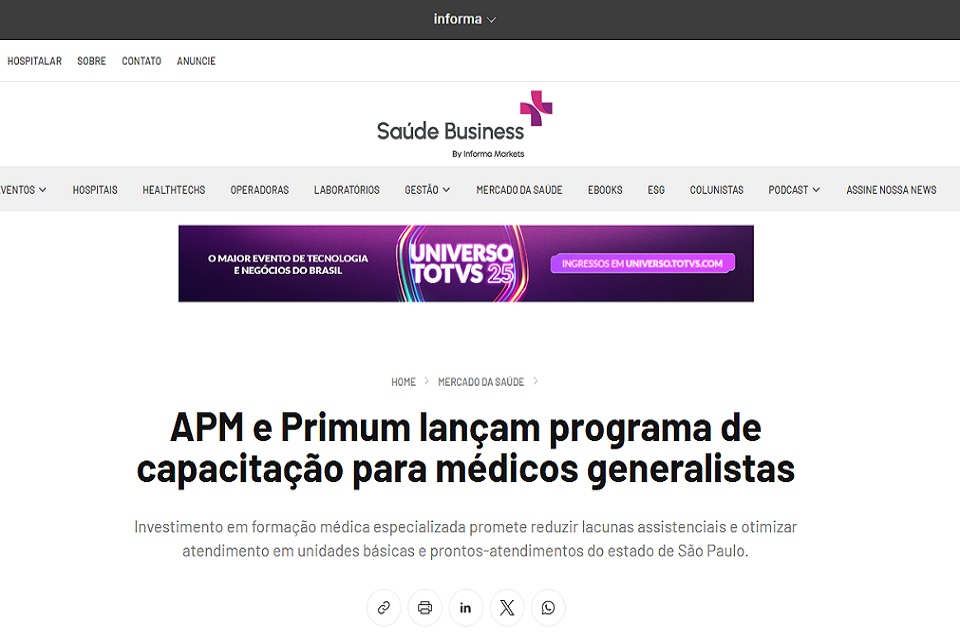 13/05/2025 Notícias giovanna APM lança o Programa de Educação para o Médico Generalista do Estado de São Paulo